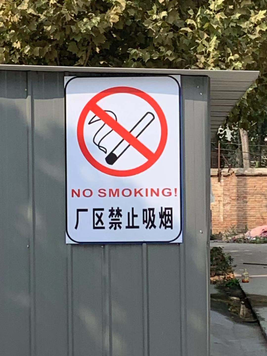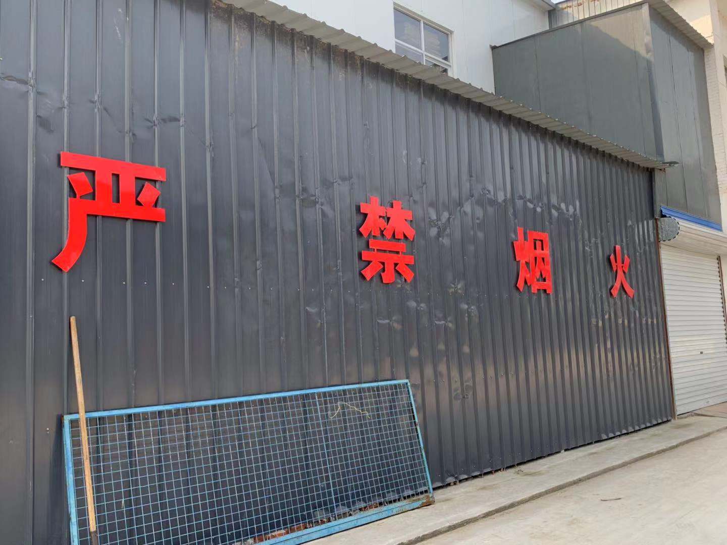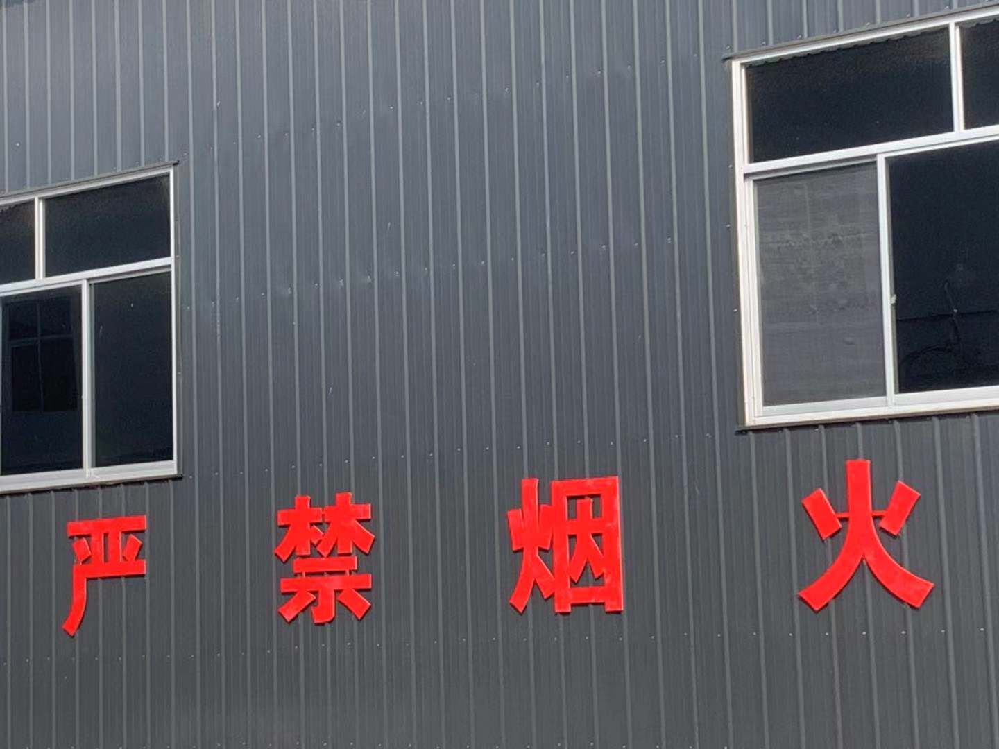公司主营纸箱以及EPE海绵制作等,均属于易燃物品,为防范于未然,公司采用pvc材质做的警示标语,并在每次会议中重点提及安全,防火等方面事宜,以为家人提供安全舒适的工作环境